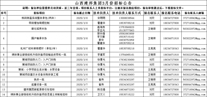 我公司三月份擬對(duì)以下項(xiàng)目進(jìn)行自主招標(biāo)。意向客戶請(qǐng)撥打報(bào)名電話,索取相關(guān)招標(biāo)文件及投標(biāo)保證金賬號(hào)。