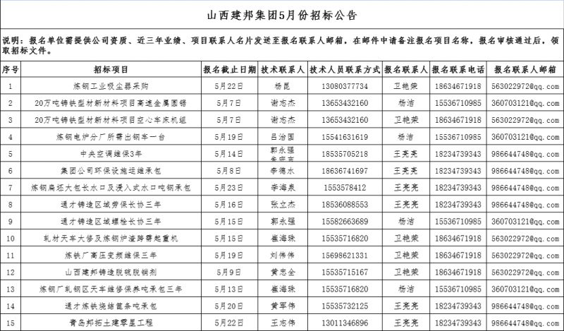 山西建邦集團五月份擬招標項目招標公告