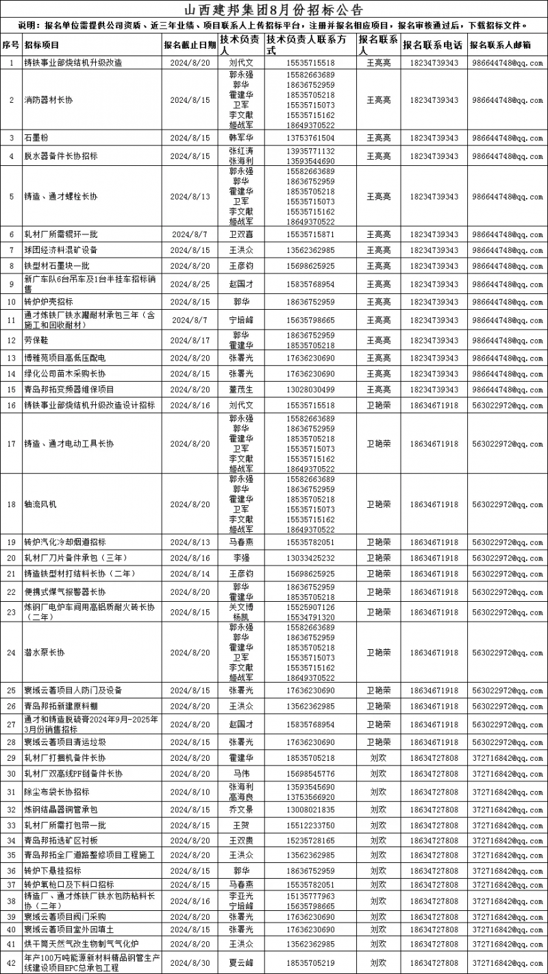 我公司八月份擬對(duì)以下項(xiàng)目進(jìn)行自主招標(biāo)。意向客戶請(qǐng)撥打報(bào)名電話,索取相關(guān)招標(biāo)文件及投標(biāo)保證金賬號(hào)。