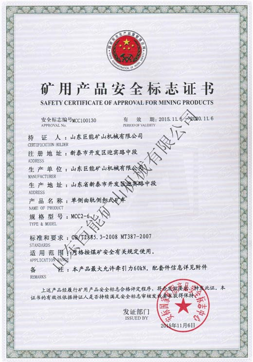 | 發(fā)證機(jī)構(gòu): | 安標(biāo)國(guó)家礦用產(chǎn)品安全標(biāo)志中心 | 發(fā)證時(shí)間 : | 2015-11-06 |