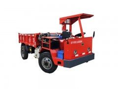 WC2J型防爆柴油機無軌膠輪車是我公司自主研制開發(fā)的依據(jù)中小型煤礦井下作業(yè)環(huán)境運輸 要求的一種新型貨物運載車輛;具有國III排放標準、增壓中冷、電控高壓共軌噴射型式的 WH495DZLDFB防爆柴油機及防爆自動保護裝置,輸岀功率48kW (防爆功率),機械傳動、 濕式制動、后輪驅(qū)動的煤礦井下運輸車輛。該車輛結(jié)構(gòu)緊湊、體積小,主要適用于小斷面、窄巷 道的煤礦井下防爆作業(yè)。其適用的環(huán)境條件: