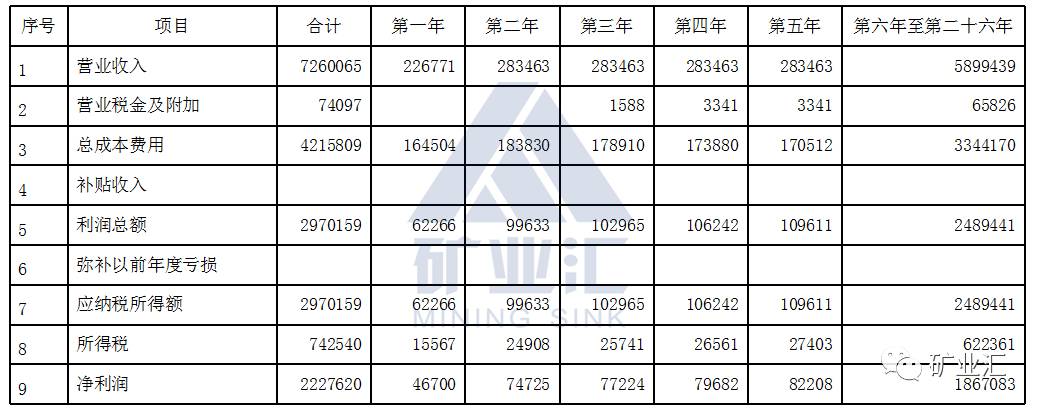 思山嶺鐵礦項(xiàng)目凈利潤預(yù)期表(萬元)
